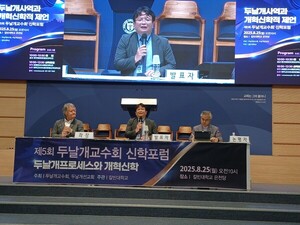 [데일리굿뉴스] 김신규 기자= 지난 25일 칼빈대학교 은천당에서 열린 제5회 두날개교수회 신학포럼이 ‘두날개 프로세스와 개혁신학’을 주제로 개최돼 한국교회의 신학적 정체성과 회복 방향을 모색했다. 이번 포럼은 두날개교수회와 두날개선교회가 공동 주최하고, 칼빈대학교가 주관했다.김용준 교수 발제, “사회적 삼위일체론의 위험성과 교회의 참된 표지”발제를 맡은 김용준 교수(칼빈대 조직신학)는 ‘Ecclesia Reformata semper Reformanda est’(개혁된 교회는 항상 개혁돼야 한다)라는 개혁교회의 고백을 서두에 인용하며